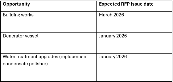 This project will replace our ageing coal-fired No.5 Boiler with an HV electrode boiler, supported by necessary upgrades to the Boyer Substation. RFP details are listed below.